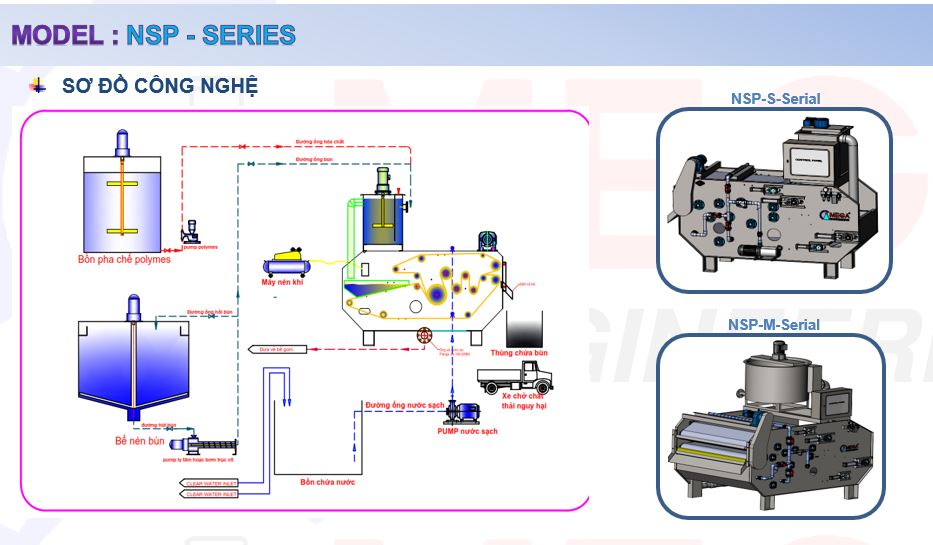 MEGA sản xuất hai dòng máy ép bùn băng tải chính : NSP-serial và DSP-Serial |