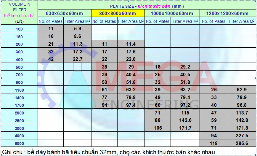 - Bản lọc kích thước chuẩn 630x630x60mm, 800x800x60mm, 1000x1000x60mm, 1200x1200x60mm, vật liệu nhựa số bản 15 tới 120 bản/máy.
