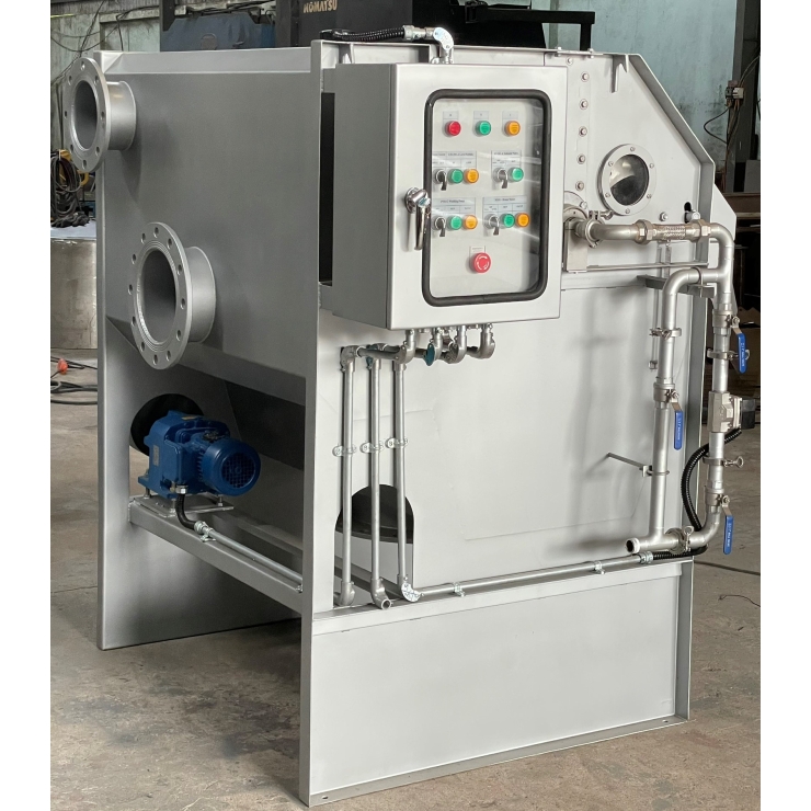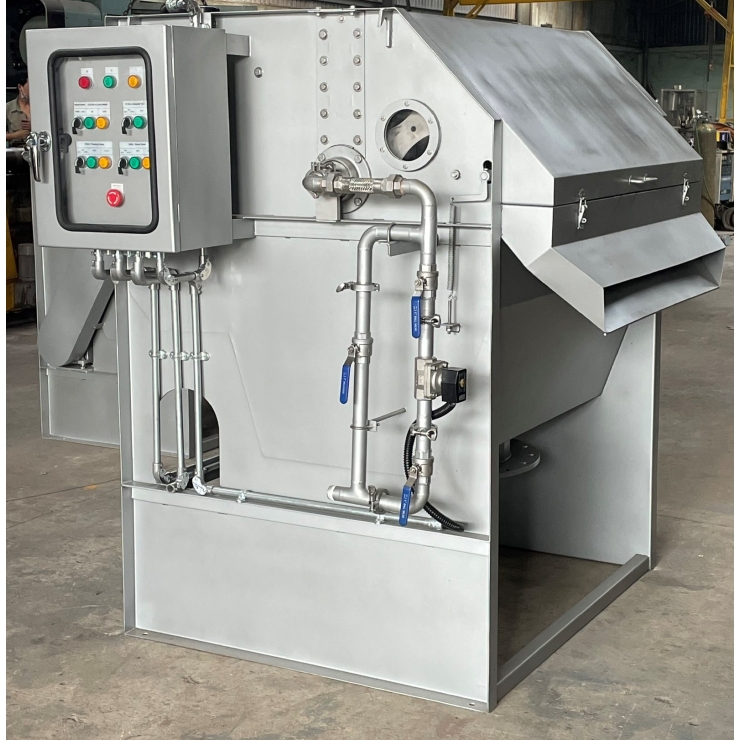 Máy tách rác RDS-450 là thiết bị lọc rác tinh kiểu tang quay, nhiệm vụ loại bỏ tối đa các cặn rắn có kích thước lớn hơn 0.5mm có trong nước thải trước khi vào bể xử lý sinh học. Hiệu suất xử lý cặn rất cao đạt đến 90-95%, làm giảm đáng kể chỉ tiêu COD của nước thải đầu vào.