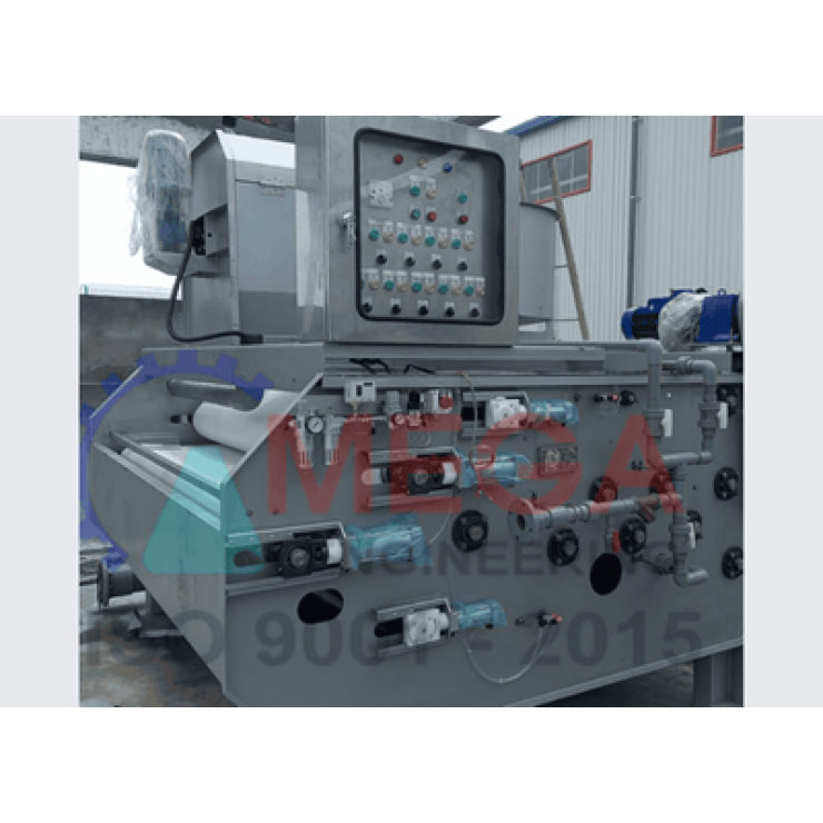Máy được chế tạo theo nguyên lý lọc ép băng tải đôi, cấp liệu liên tục.
