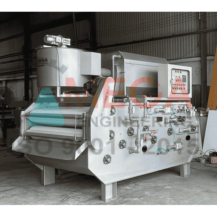Vùng vắt áp suất cao (Dewatering): Bùn được ép mạnh qua hệ thống rulo, giảm độ ẩm xuống còn 65–86%.